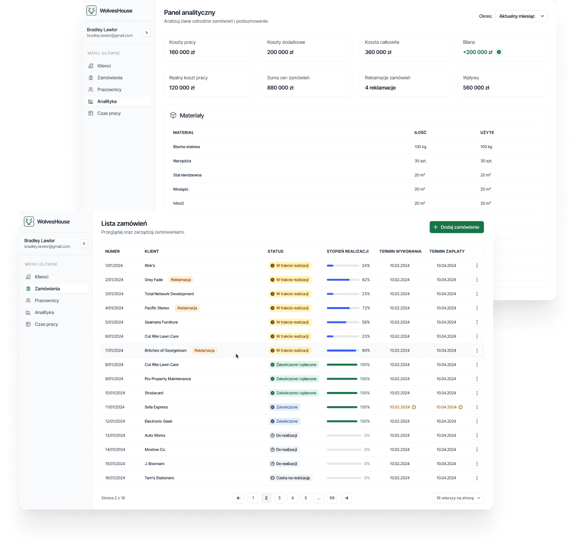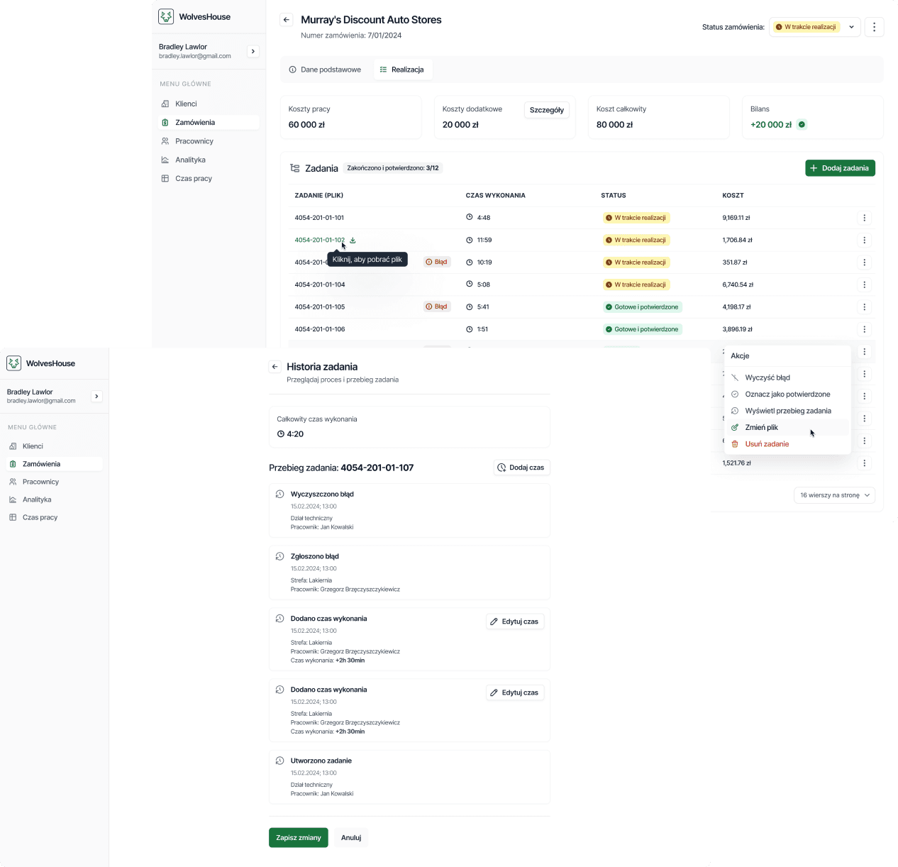 Kompleksowe rozwiązanie, umożliwiające pełną kontrolę nad każdym etapem realizacji zamówień produkcyjnych.
